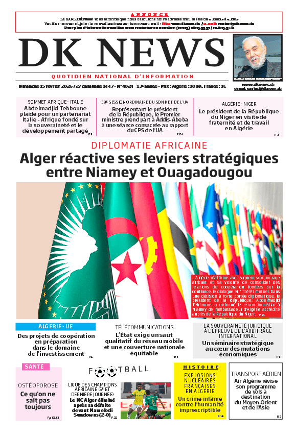 L’Algérie réaffirme avec vigueur son ancrage africain et sa volonté de consolider des relations de coopération fondées sur la confiance, le dialogue et l’intérêt mutuel.Dans une décision à forte portée diplomatique, le président de la République, Abdelmadjid Tebboune, a ordonné le retour immédiat à Niamey de l’ambassadeur d’Algérie accrédité auprès de la République du Niger.Cette mesure intervient après la reprise…