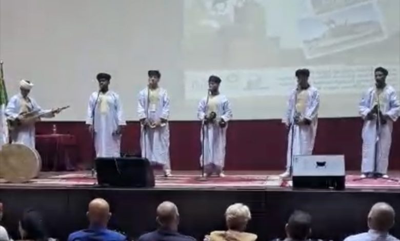 La cérémonie d’ouverture a été marquée par la présentation de pièces musicales traditionnelles qui ont fortement captivé le public local, notamment dans le style « Gnaoui / Karkabou « , le chant féminin saharien, ainsi que des poèmes en malhoun hassani, soulignant l’authenticité et la richesse du patrimoine culturel algérien.
