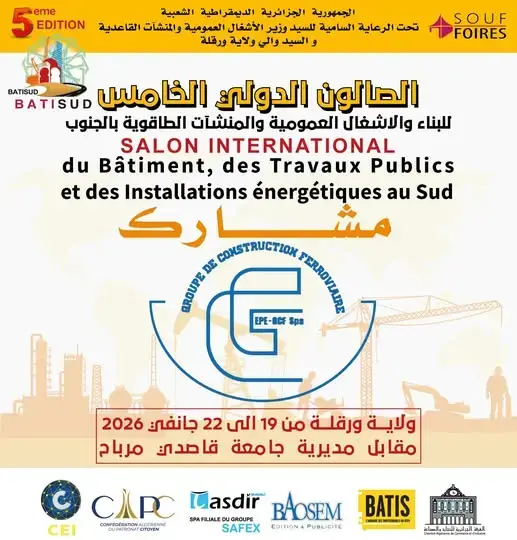 La 5ème édition du Salon International du Bâtiment, des Travaux publics et des Installations pétrolières « Batisud » se déroulera du 19 au 22 janvier prochain à Ouargla, a-t-on appris jeudi des organisateurs.