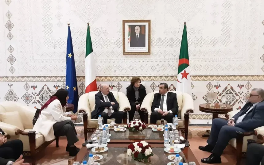 Le ministre italien a été accueilli au Salon d’honneur présidentiel de l’Aéroport international Houari-Boumediene, dans le cadre de la visite qu’il effectue en Algérie, à la tête d’une délégation, pour prendre part aux travaux de la conférence organisée par la Banque d’Algérie, en collaboration avec le Fonds monétaire international (FMI), sous le thème « Afrique du Nord : relier les continents, créer des opportunités », précise le communiqué.