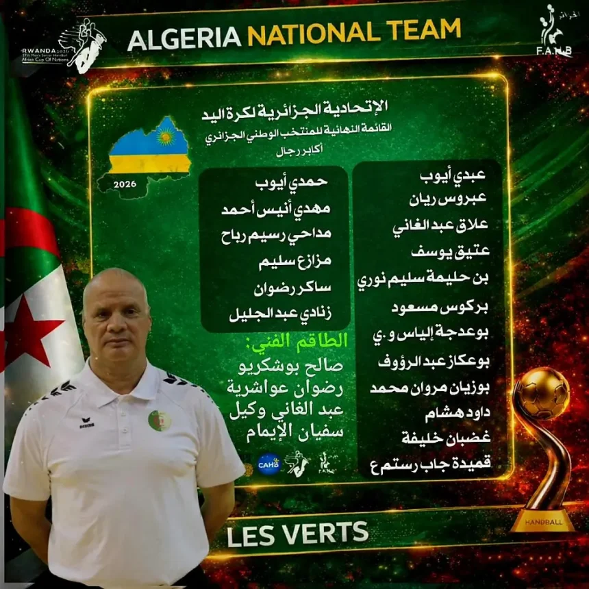 La Fédération algérienne de handball (FAHB) a dévoilé vendredi la liste des 18 joueurs retenus par le sélectionneur national, Salah Bouchekriou, en prévision de la 27e édition du Championnat d'Afrique…