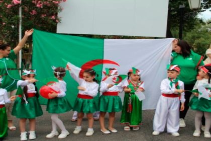 Le deuxième groupe d'enfants de la communauté algérienne établie à l'étranger, participant…